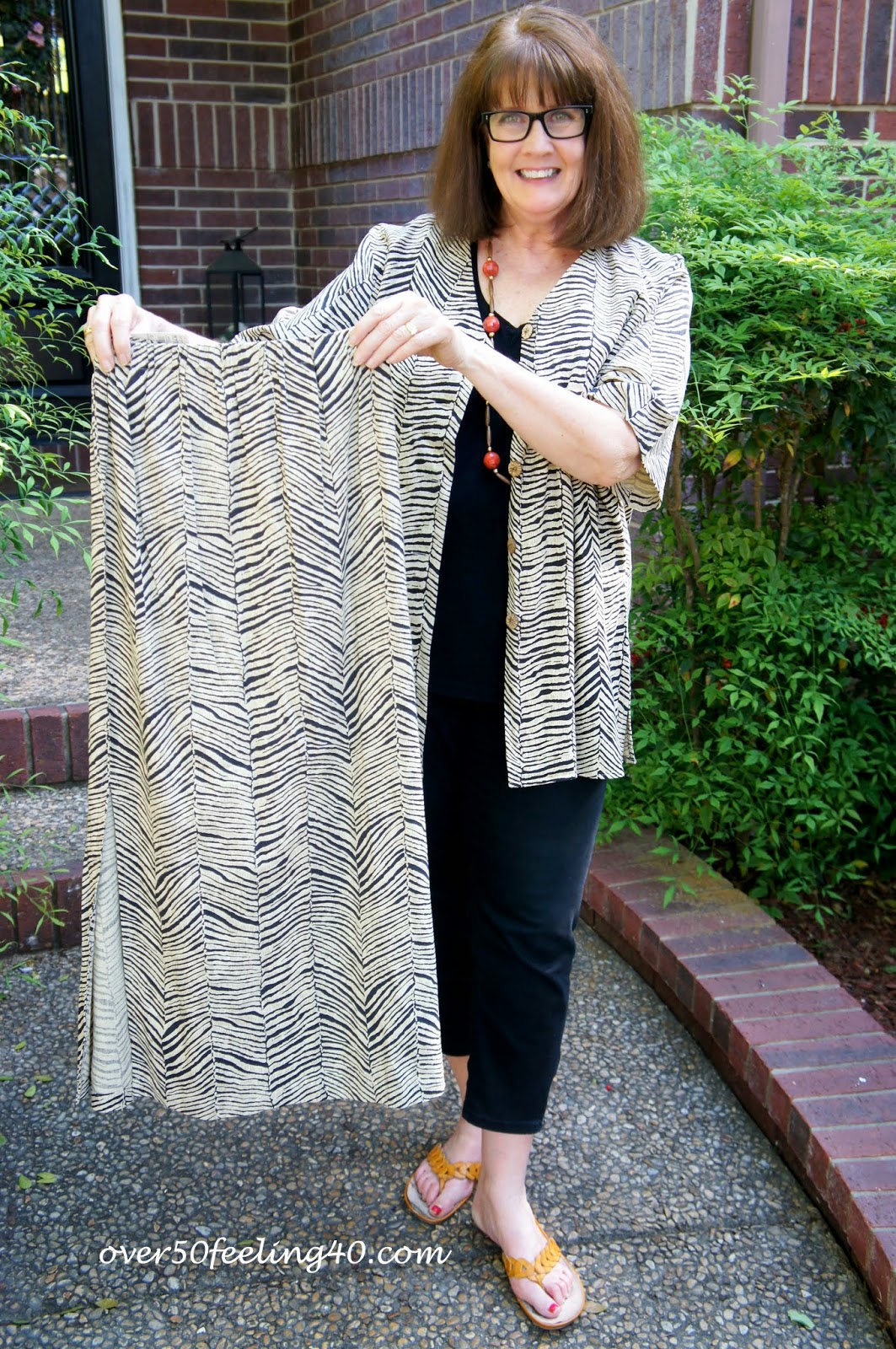 On, Wednesday HERE I showed you how I purchased some two and three piece outfits recently at GOODWILL-SA...broke them up and fashioned some different looks for this summer. This two piece is another one...I like the jacket for a tribal, casual look. Not sure, yet what I will do with the skirt..possibly wear it with a safari-type-camp shirt, and a woven belt on the outside and sandals. Even if I just wear the jacket ...it will a keeper at $4.