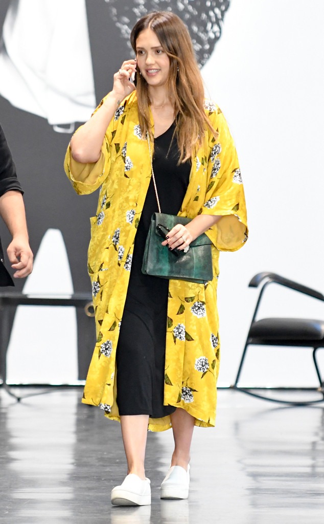 Pregnant Jessica Alba Covers Up Her Baby Bump In Maxi Dress